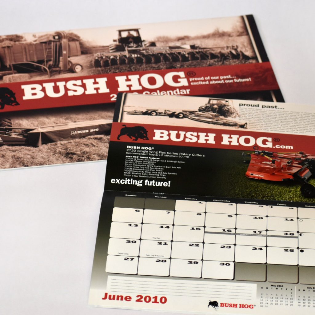 This 2010 Bush Hog Calendar was the first-ever for the company and was printed in a large 24×17 and small 9×12 version (shown). The design concept focused on the history and longevity of the original rotary cutters made in Selma, Al, nearly 60 years ago.
